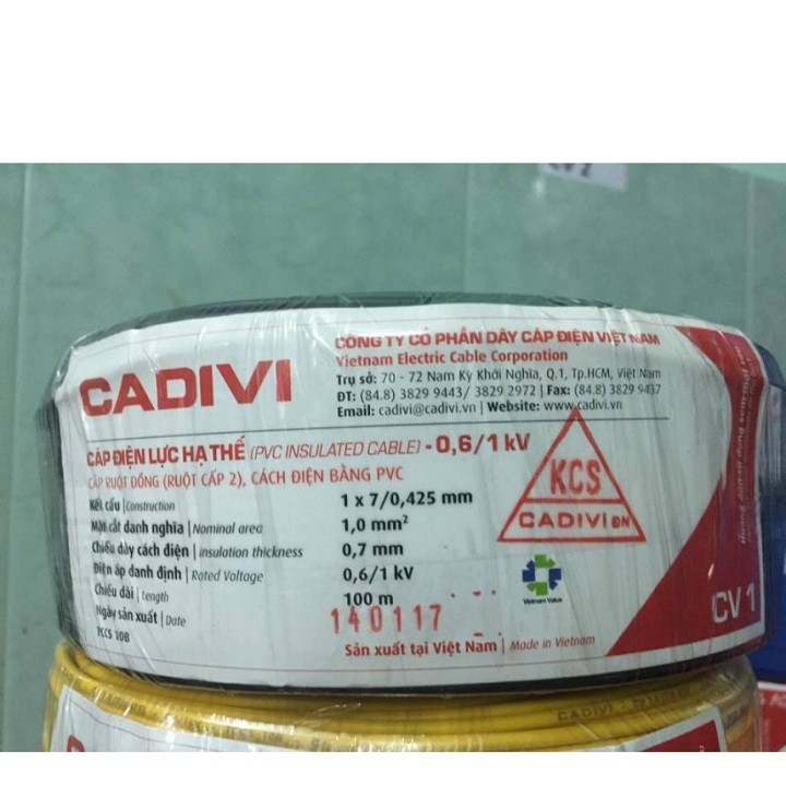 Dây cáp điện đơn 1mm2, CV 1, Cadivi