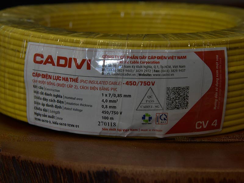 Dây cáp điện đơn 4mm2, CV 4, Cadivi